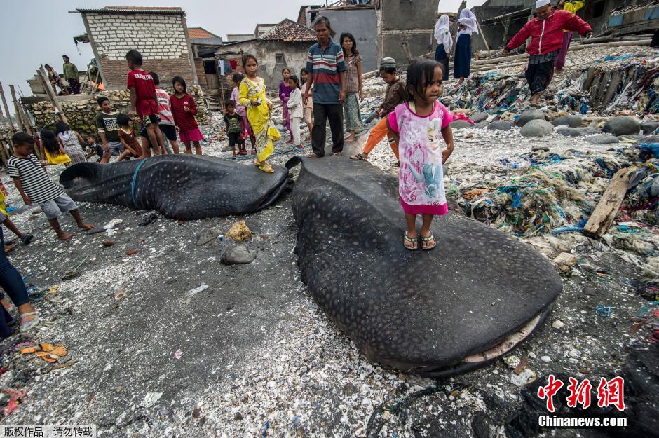 当地时间10月26日,印尼泗水渔民两天内在马都拉海峡用渔网捕到两头鲸鲨的尸体。这样的事件和鲸鲨的迁移周期有关,从10月份到1月份,鲸鲨会因寻找食物而迁移。而当地渔民的孩子们踩在鲸鲨上玩耍,俨然成为了孩子们的“玩具”。