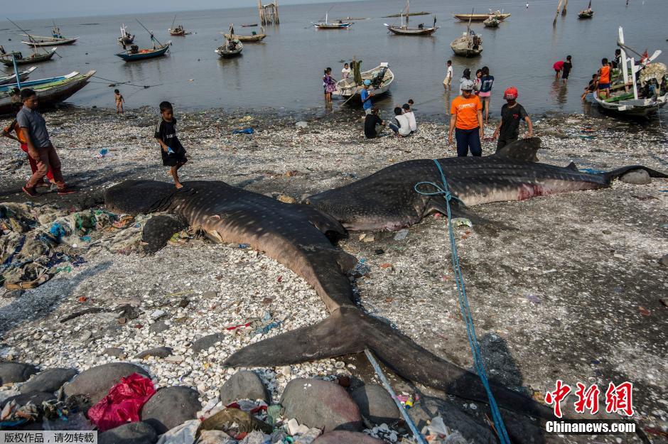 当地时间10月26日,印尼泗水渔民两天内在马都拉海峡用渔网捕到两头鲸鲨的尸体。这样的事件和鲸鲨的迁移周期有关,从10月份到1月份,鲸鲨会因寻找食物而迁移。而当地渔民的孩子们踩在鲸鲨上玩耍,俨然成为了孩子们的“玩具”。