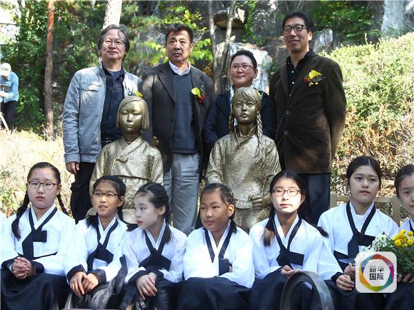 新华网北京10月29日电 一座纪念二战时被日军迫害的中韩“慰安妇”雕像,28日在韩国首尔城北区正式落成揭幕,这是首座由中韩艺术家共同设计制作而成的“慰安妇”少女像。