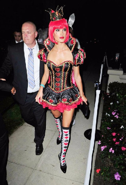 爱装扮的超模Alessandra Ambrsio用力过猛,扮起了红桃皇后。