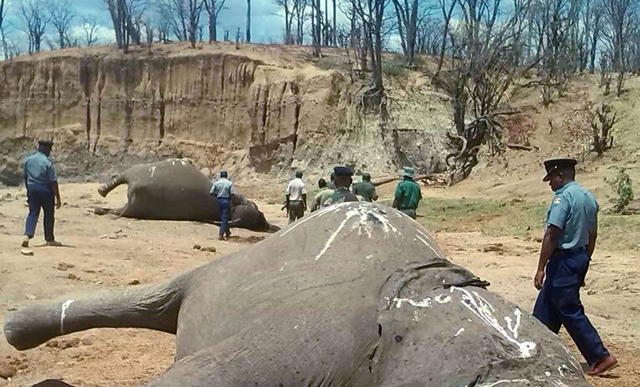 10月26日,津巴布韦万基国家公园,一群大象死于偷猎者之手。