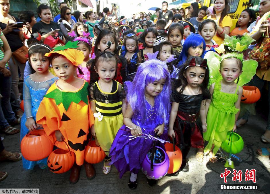 菲律宾小学生参加万圣节游行 “小鬼头”上街欢乐多