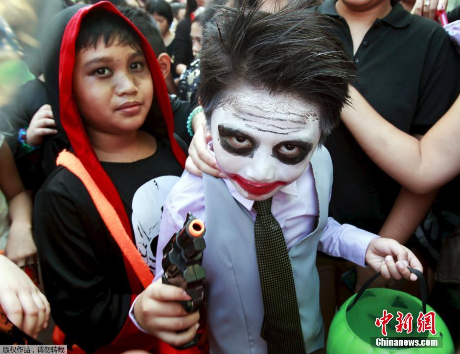 菲律宾小学生参加万圣节游行 “小鬼头”上街欢乐多
