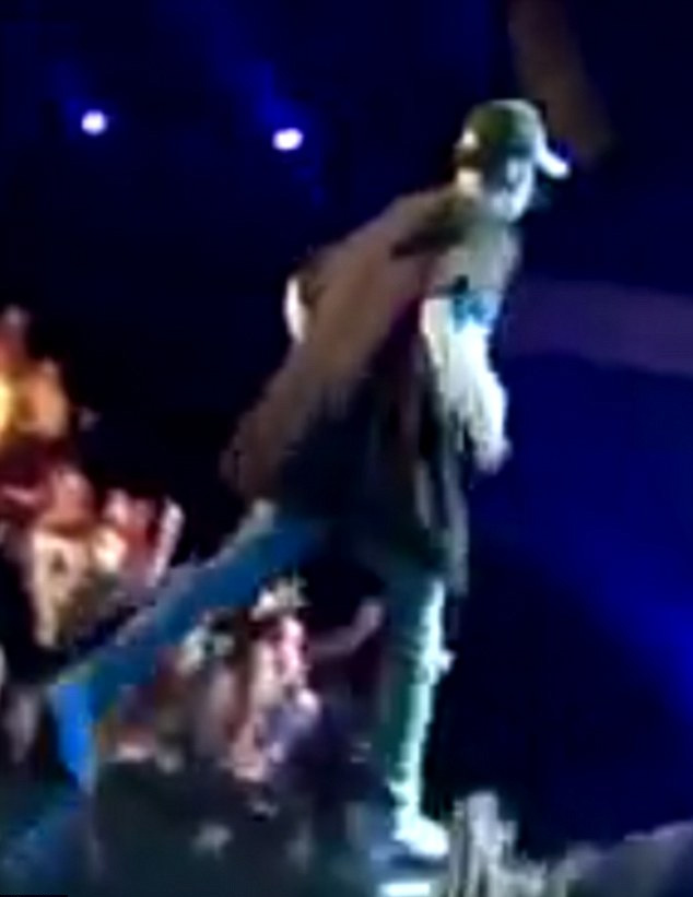 当时后排的歌迷并不知道发生了什么,比伯说:“这个节目表演不下去了。”