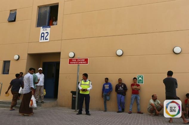 一些外籍劳工在宿舍楼外休息。(图片来源:新华/法新)
