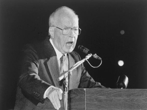 图为拉宾在遇刺前发表演讲(美联社照片)