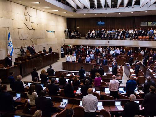图为以色列国会议员在纪念拉宾遇刺20周年仪式上站立默哀