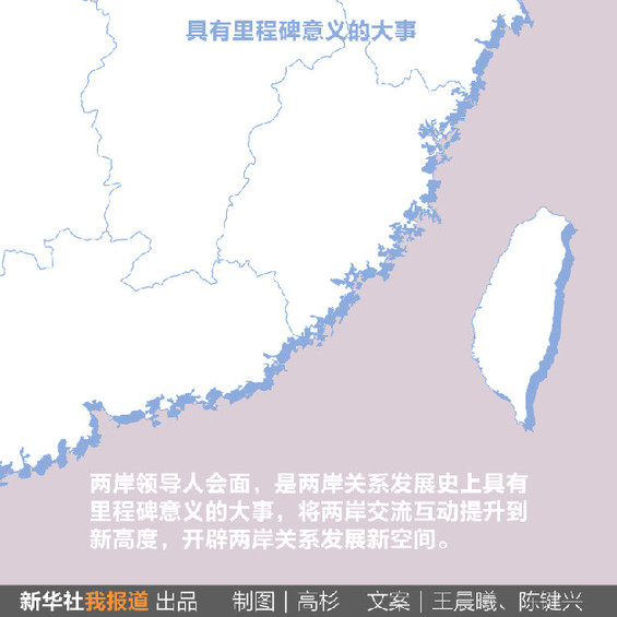 2015年11月7日,两岸领导人习近平、马英九将在新加坡会面,就推进两岸关系和平发展交换意见。这是两岸关系发展史上具有里程碑意义的大事。(来源:新华社客户端 文字:陈键兴、王晨曦)