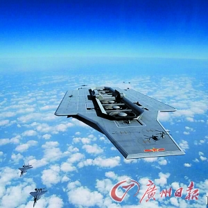 在未来的战争中,飞行航母可以携带大量无人机飞临战区边缘,然后投放出无人机深入危险战区进行侦察、巡逻和攻击。由于母机本身不需要深入敌境,其受到的威胁并不太大。一旦敌军的火力威胁迫近,航母可以果断撤离。