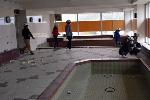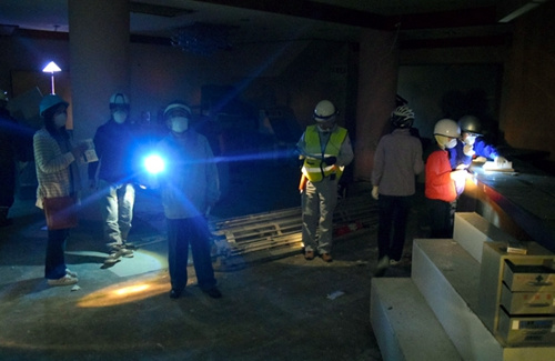 由于旅馆室内没有通电,参观者在村政府工作人员的带领下,手持手电筒游走于漆黑的前台、盛况不复的宴会厅、明亮空旷的澡堂、以及日本昭和天皇曾下榻过的豪华套房。