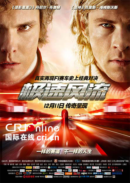 好莱坞传奇动作大片《极速风流》终于确定将于12月11日登陆全国各大院线。本片被认为是两获奥斯卡奖的朗·霍华德导演生涯中最出色的作品之一。由“雷神”克里斯·海姆斯沃斯、丹尼尔·布鲁赫两大男神倾情出演。此次全新曝光的中文海报和预告,不仅将观众带入了一场令人热血沸腾的极致赛车体验,也预示了一个打动无数观众的经典对决故事,即将在大银幕上做最完美的呈现。
