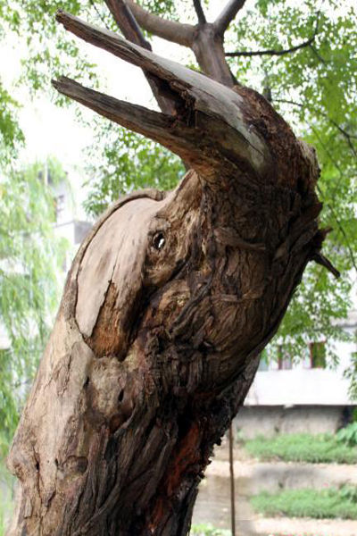 在江西省遂川县碧洲镇碧洲村沿河堤上,生长着一"怪树",有2米多高,树形弯立,在树中间分枝处,主杆和分枝成形如“大鸟”,这只“大鸟”好似停在树枝上,张开嘴巴望着远方。