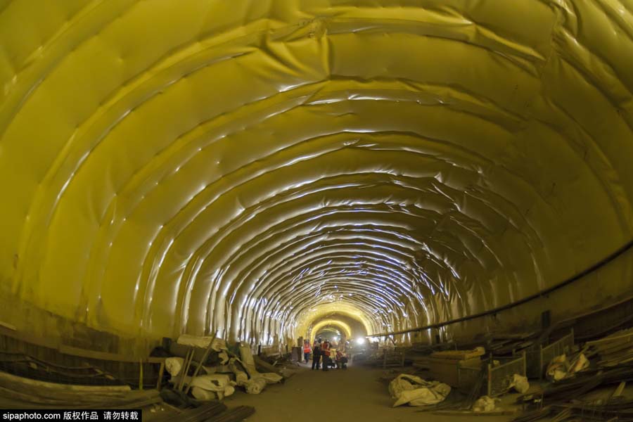 当地时间2015年11月4日,美国纽约,纽约大中央车站地下隧道工程正在进行当中,这项工程是美国目前最大交通项目旨在将长岛铁路与大中央车站连接在一起,将耗资107.8亿美金并计划将于2022年12月完成。(来源:sipaphoto)
