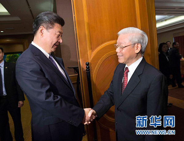 11月6日,中共中央总书记、国家主席习近平在河内再次会见越共中央总书记阮富仲。 新华社记者兰红光摄