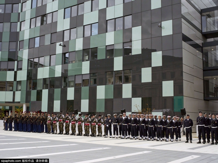 当地时间2015年11月5日,法国巴黎,法国总统奥朗德出席法国国防部新总部大楼揭幕仪式。这座庞大建筑位于巴黎南部巴拉尔区,占地大约14公顷,建设费用耗资高达42亿欧元(约合46亿美元)。国防部新大楼绰号为“法国的五角大楼”,从外部看犹如一座城堡。而它的内部围成中庭,呈六边形,与法国本土轮廓相似,因而也被称为“巴拉尔的六角大楼”。美联社报道,按照设计,新大楼的外墙可以承受导弹攻击;指挥中枢位于地下,安全措施严密;某些军事装备的位置被列为绝密,即使大楼的设计师也不知道确切地点。(图片来源:希帕中国)