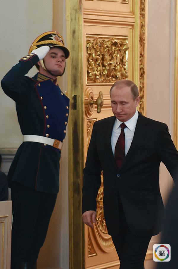 普京致辞完后,发现所有座位都是满的,只有我右边的座位是空的,于是便坐到了这个位置。所以在授完勋后的整个宴会和演出时间,普京一直坐在我的右手。