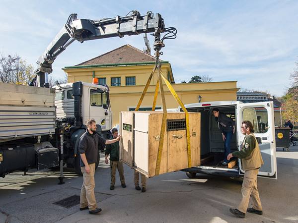 中午,55公斤重的“福豹”登上了它熟悉的转运箱,轻松,一点也不犹豫。它可能不知道,这一次它将告别生活了2年多的美泉宫动物园,告别爸爸妈妈,前往它从未去过的大熊猫故乡——中国。