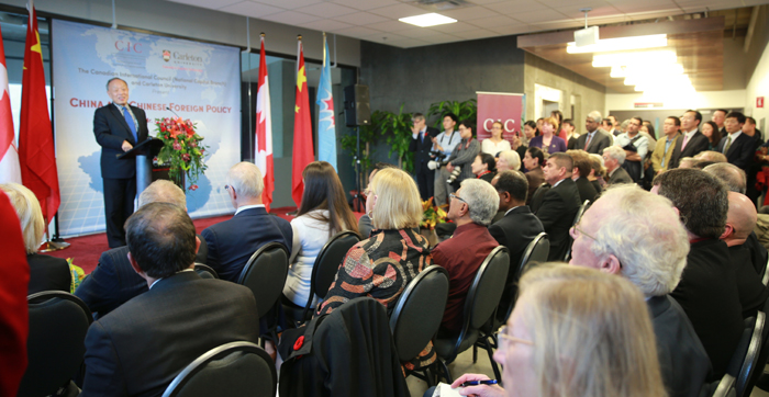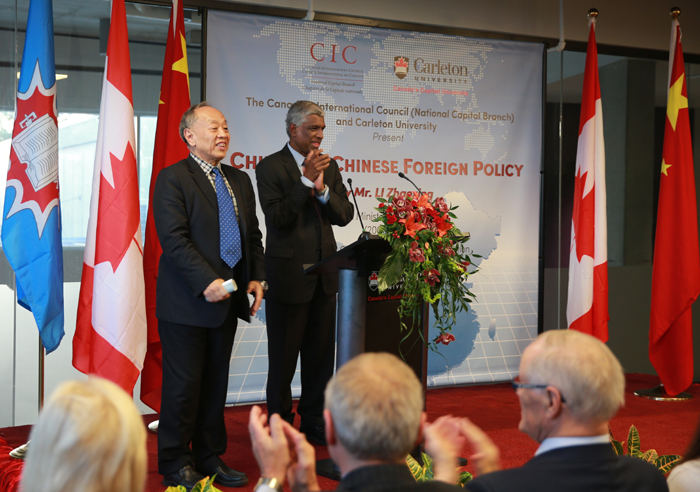 新华网渥太华11月6日电 (记者 李保东)中国公共外交协会会长、前外长李肇星5日在渥太华卡尔顿大学发表演讲。中国驻加大使罗照辉、加参议员戴伊、加拿大国际理事会主席、前外长格雷厄姆、部分外国驻加使节和卡尔顿大学师生近300多人出席。
