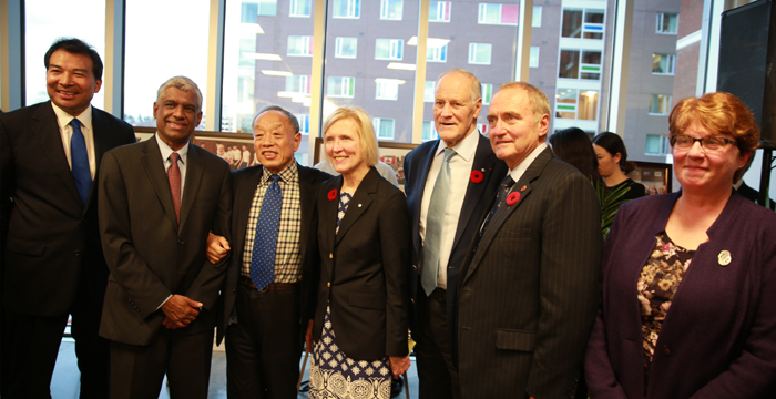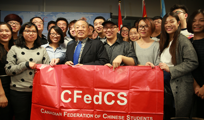 中国公共外交协会会长、前外长李肇星与中国加拿大留学生合影。记者 李保东 摄