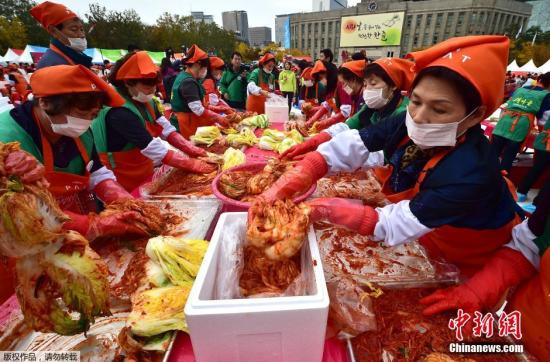 中新网11月7日电 据韩媒报道,当地时间6日,韩国首都首尔举行泡菜节,成千上万的民众聚集市政广场,庆祝韩国独特的美食辣白菜。