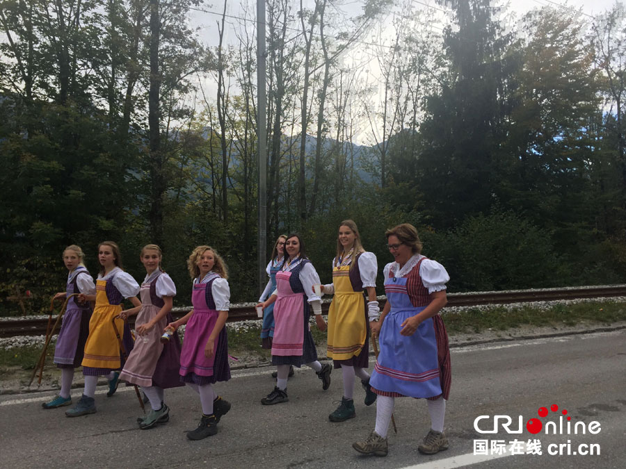 瑞士传统的女性牧民服饰颜色很艳丽