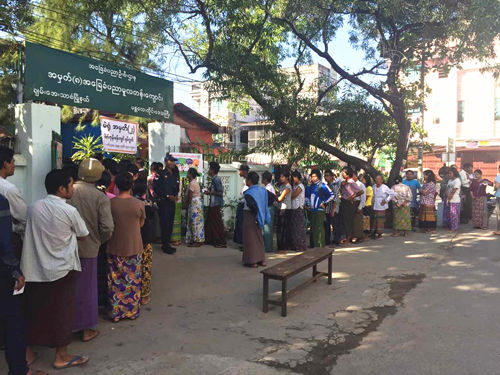 新华社记者在仰光市一个投票站看到,当天早上不到6点,选民们已经排起了长龙。
