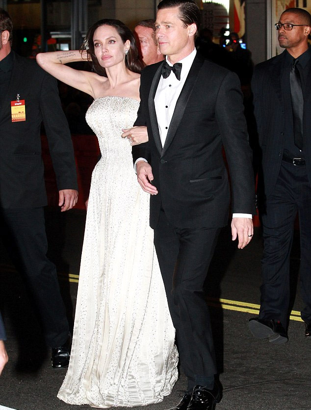 皮特朱莉现身《海岸情深》全球首映 朱莉抹胸长裙优美