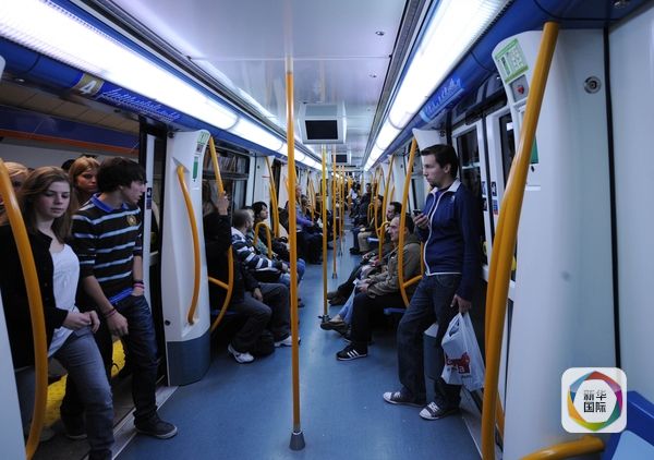 2010年10月17日,人们在马德里乘坐地铁。地铁是马德里人出行的重要工具,首条地铁开通于1919年。(新华社记者陈海通摄)