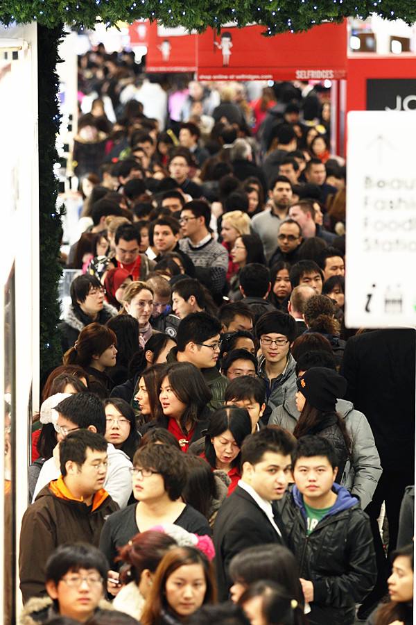 2011年12月26日,在英国首都伦敦,塞尔弗里奇百货公司里挤满了购物者。(新华社/法新)