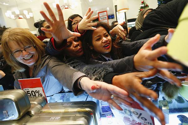 2012年12月26日,人们在位于英国伦敦的塞尔弗里奇百货公司抢购香水。(新华社/路透)