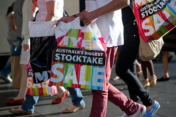 2012年12月26日,人们在澳大利亚墨尔本市中心的商业区满载而归。新华社发(白雪摄)