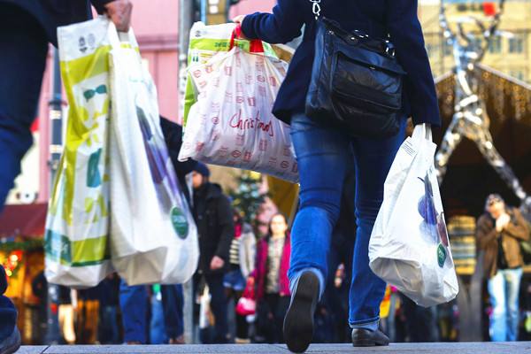 2013年12月23日,在德国首都柏林,人们拎着大包小包走在大街上。 (新华社/路透)