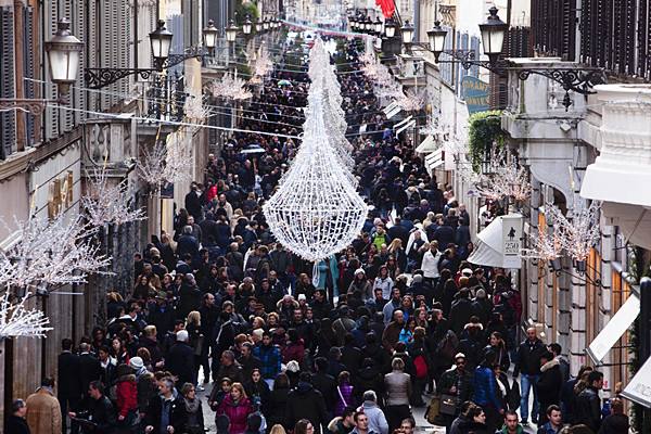 2012年1月5日,意大利罗马的购物街孔多蒂大街上人潮涌动。 当天,意大利主要城市进入冬季打折季。(新华社发)