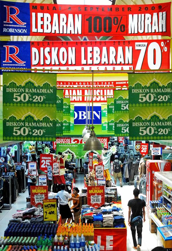 2009年9月1日,印度尼西亚首都雅加达的一家商场打出打折标语吸引顾客。(新华社记者岳月伟摄)