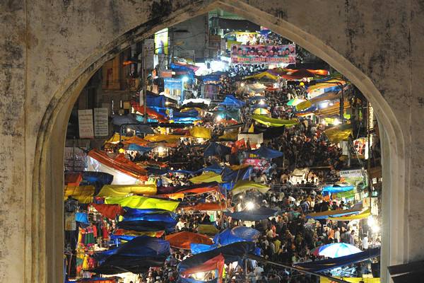 2014年7月18日,在印度海得拉巴,穆斯林们在开斋节之前采购商品。(新华社/法新)