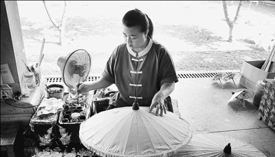泰国清迈府宝山村村民正在制作手工伞。本报记者 张志文摄