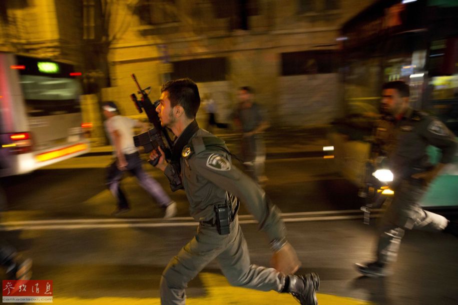 10月14日,耶路撒冷,以色列军警正迅速奔向冲突地区。