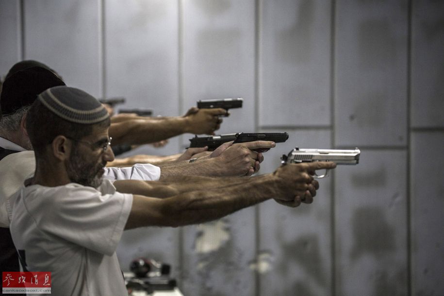 10月15日,耶路撒冷,几名以色列人在进行手枪打靶训练。