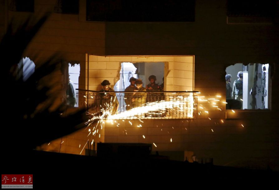 10月20日,约旦河西岸,希伯伦南部,以色列士兵们正在拆除一处巴勒斯坦武装人员的据点,据称这些武装人员曾于去年杀死了一名以色列人。