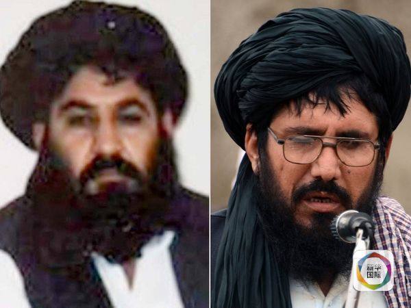 接片:塔利班新首领的毛拉阿赫塔尔·曼苏尔(左)和毛拉穆罕默德·拉苏尔。