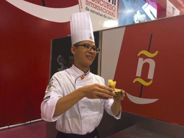 西班牙北部小城巴利亚多利德市9日和10日举办第七届国际塔帕斯节,来自中国大陆、中国台北、韩国、新加坡、美国、加拿大等国家和地区的12名年轻选手参加了厨艺比赛。新加坡选手张俊祥(音译)最终以炒饭、土豆香肠和鸡蛋的“三合一”巧妙组合赢得比赛。