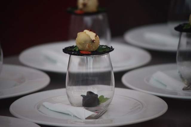 比赛期间,记者有幸品尝了一些独具创意的迷你小吃。比如“燃烧的鸡蛋”,是用香菇、鸡蛋、奶油等制作,入口即化;“海、陆、空”,则是用酒、西红柿、水果和烟进行模拟,让人充满了好奇和想象空间;“贡多拉船”,则满载着鱼虾,且要连船一块儿吃下,充满新意,不一而足。