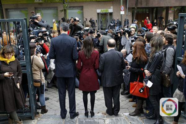 西班牙三大保守党加泰罗尼亚地区分支领导人11月4日在西班牙宪法法院前抗议加泰罗尼亚启动“独立"程序。