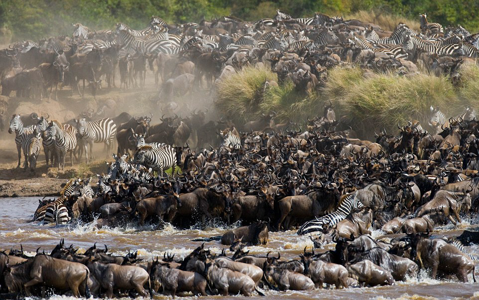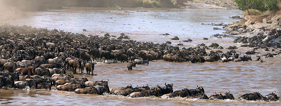 角马迁徙途中遭鳄鱼偷袭 完成“生命之跃”(高清组图)