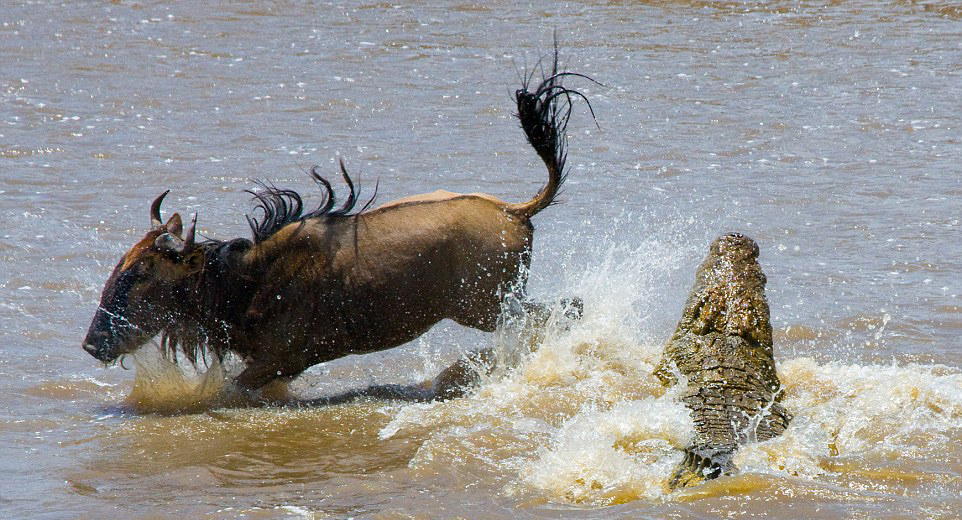 角马迁徙途中遭鳄鱼偷袭 完成“生命之跃”(高清组图)