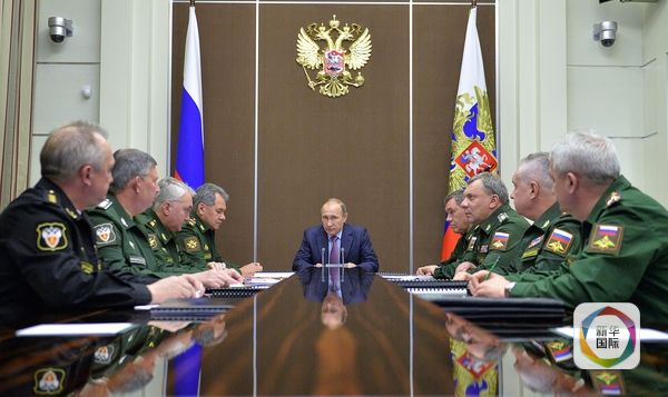 11月10日,俄罗斯总统普京与国防部官员在索契开会。(图片来源:新华/美联)