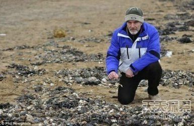7、英国东南部肯特郡4万只死蟹被冲上海岸