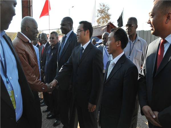 图为安哥拉总统多斯桑托斯在莫桑梅德斯铁路建设期间接见魏瑞海等项目主管人员。