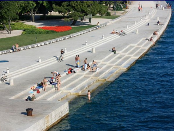 原来,扎达尔历史悠久,但其建筑在二战中几乎损毁殆尽,战后海岸重建杂乱无章,海岸线风光多“退化”为单调乏味的水泥“长墙”。在城市海岸重新设计工程中,设计师尼古拉·巴希奇受古希腊水动风琴的启发设计了这一“海洋风琴”,于2005年4月向公众开放。