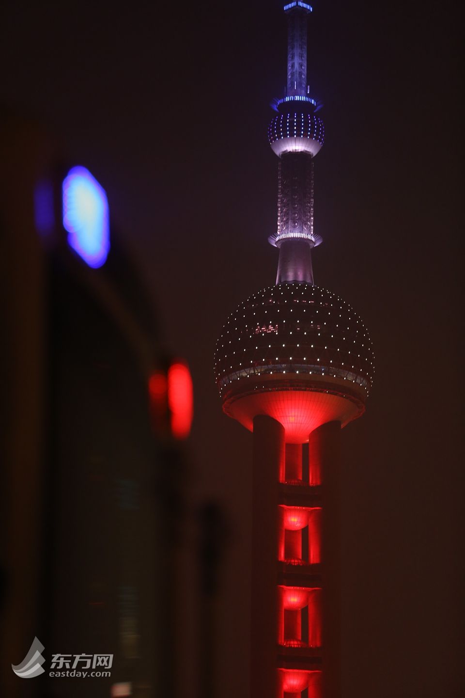 东方网记者刘歆11月14日摄影报道:今晚,与巴黎埃菲尔铁塔同为世界高塔协会成员的东方明珠亮起红、白、蓝三色灯,表达哀思。在这个法国人民悲伤的时刻,应该严厉谴责恐怖分子的野蛮行径,为所有在这场灾难里逝去的无辜生命默哀!